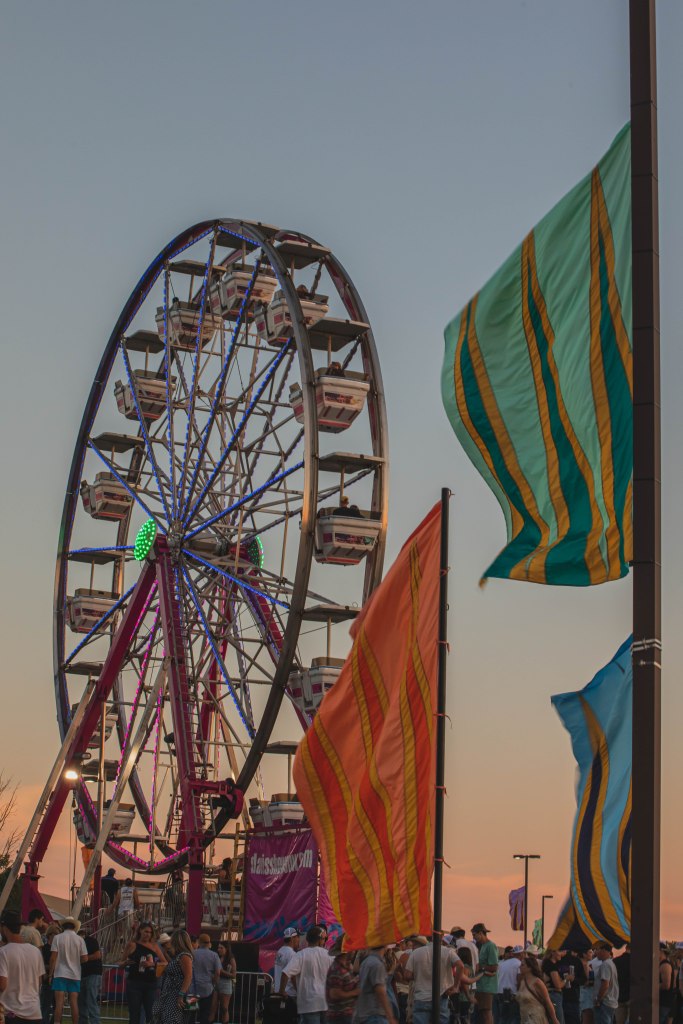 The fairgrounds, while it is mid-summer and pretty hot, was a perfect location for the festival. There were areas with shade, plenty of room to dance, and the three stages were close enough to catch the next set you’d like to see. There was also a Ferris Wheel overlooking the main stage for those interested in a different viewing experience to see their favorite sets.