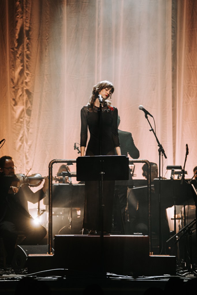 On arrival at the venue, fans were handed a white pamphlet giving credit to each of the orchestras assisting her at each stop, as well as the musicians who helped bring this performance to life. Webster performed on a platform with the rest of the orchestra behind her. The live orchestra provided an ethereal sound that sounded extremely authentic.