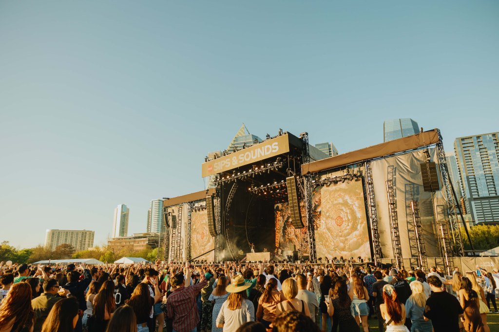 The 2026 two-day Sips and Sounds Festival tied in with SXSW this year in downtown Austin, Texas with yet another unique lineup and range of artists. The weather was a perfect Spring day and Friday was packed with artists at The Long Center overlooking the Austin skyline. It kicked off with local Austin artist Skateland, who makes dreamy indie pop rock music. On the Coca Cola stage, Aidan Bissett continued the alt-pop theme with crooning vocals while strumming guitar.
